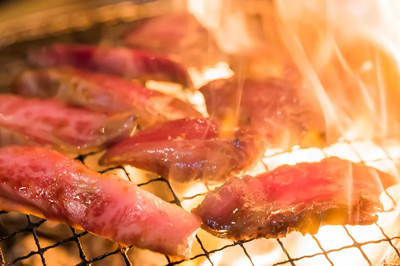 七輪の炭火で焼き上げるお肉は、香ばしい香りとともにじっくりと旨味を引き出します。